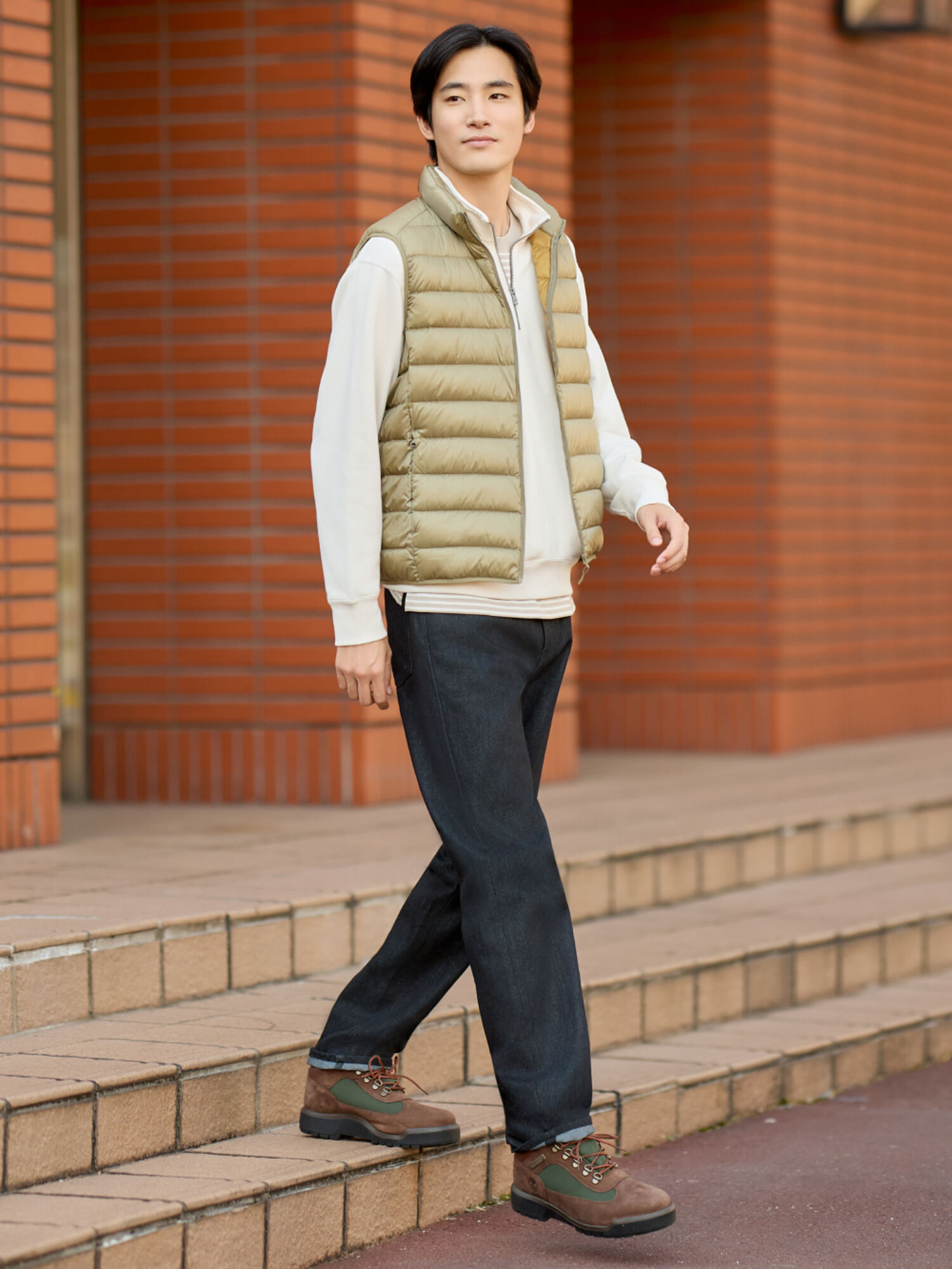 The vest is an ideal fashion item for cold weather days. You can match a vest with a long-sleeved T-shirt or a thin sweater to create a dynamic and youthful appearance. To increase flexibility, combine jeans or jogger pants and complete the outfit with sneakers. Neutral colors such as black, gray or navy will make it easier to coordinate, while providing a modern style and suitable for many situations.