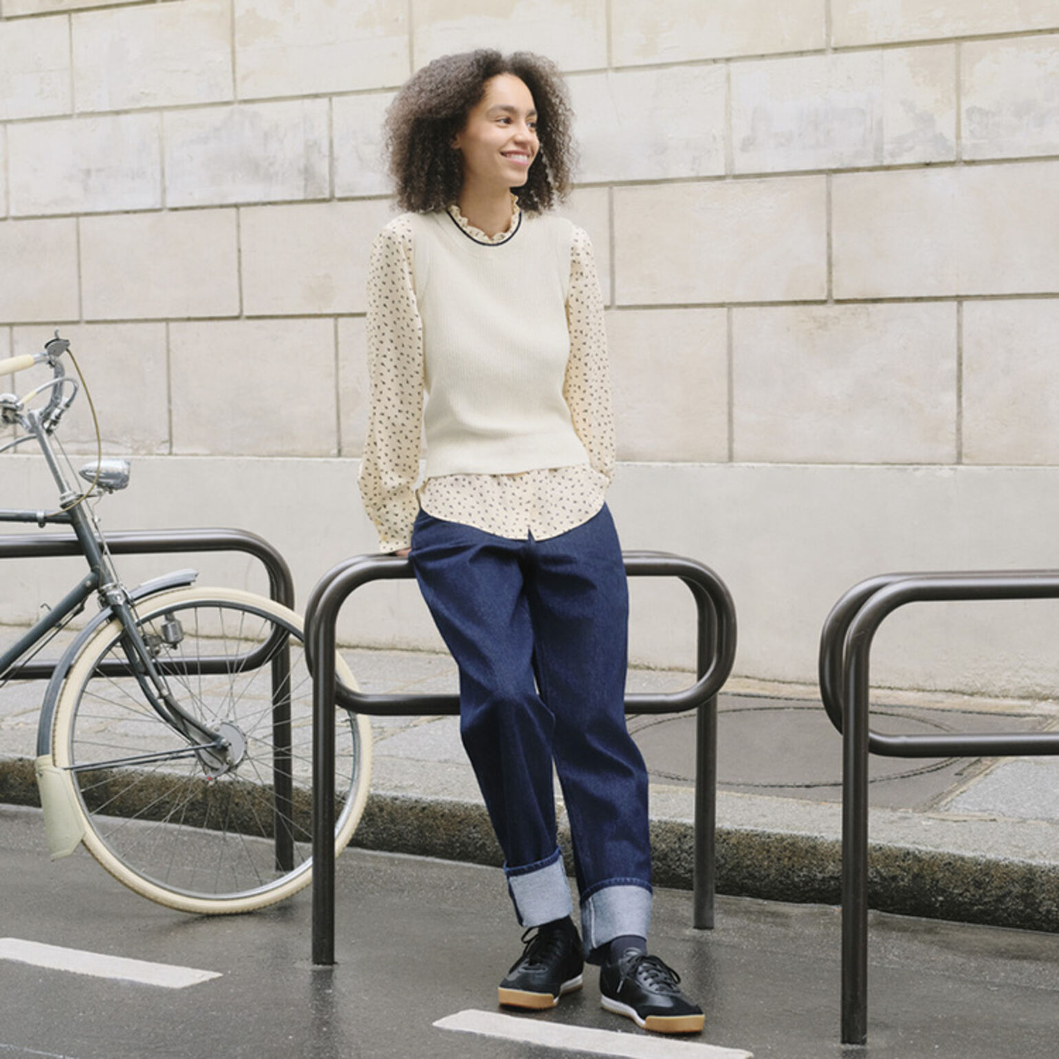 A shirt and cardigan make a flawless combo, offering an elegant and gentle appearance for chilly autumn days. Try choosing a white or pastel-colored shirt, layered with a soft cardigan featuring bow or argyle patterns as a highlight, and pair it with straight-leg women’s trousers or a midi skirt to confidently hit the streets.