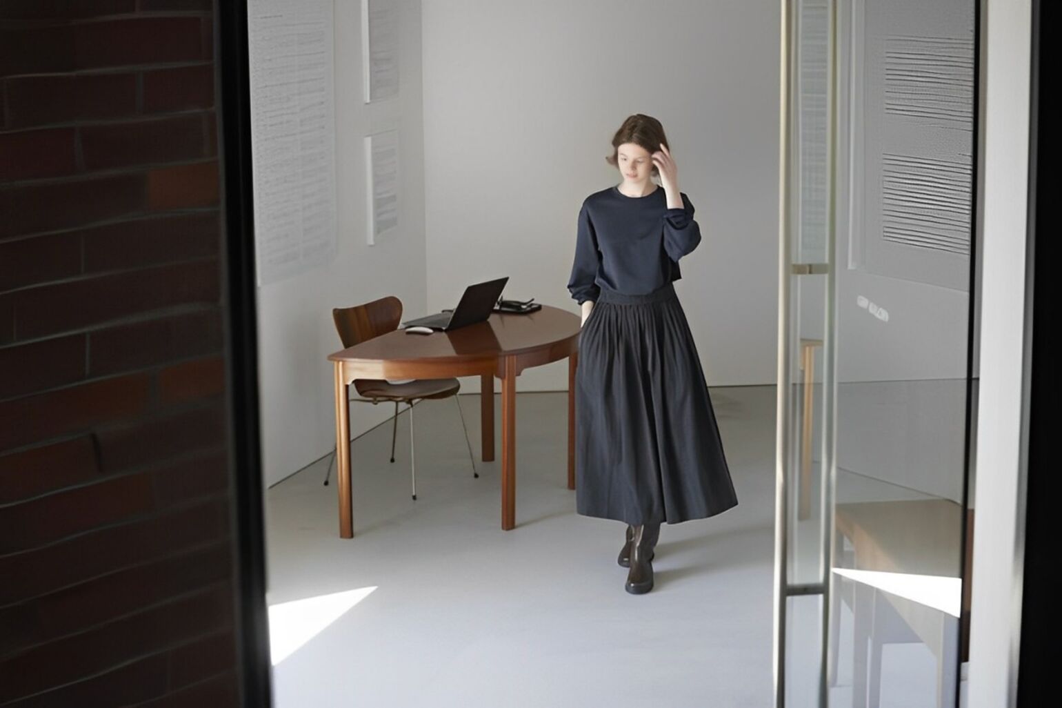 Styling Knee-Length Skirts with a Long-Sleeve T-Shirt