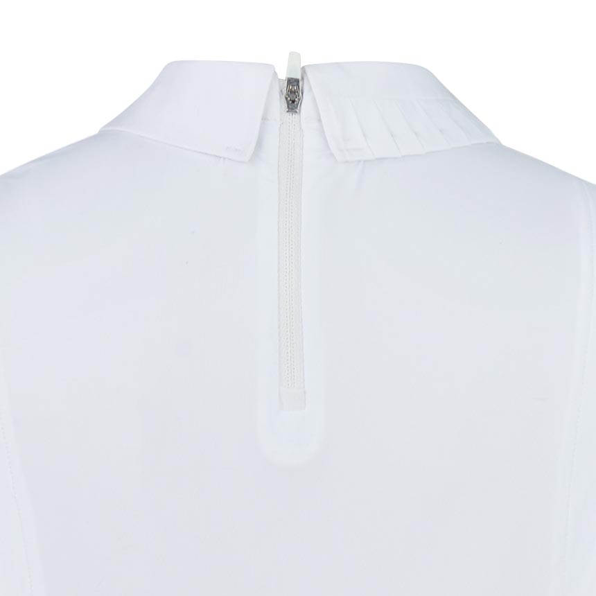 The 2-layer ruffled shoulder creates a new, feminine look.