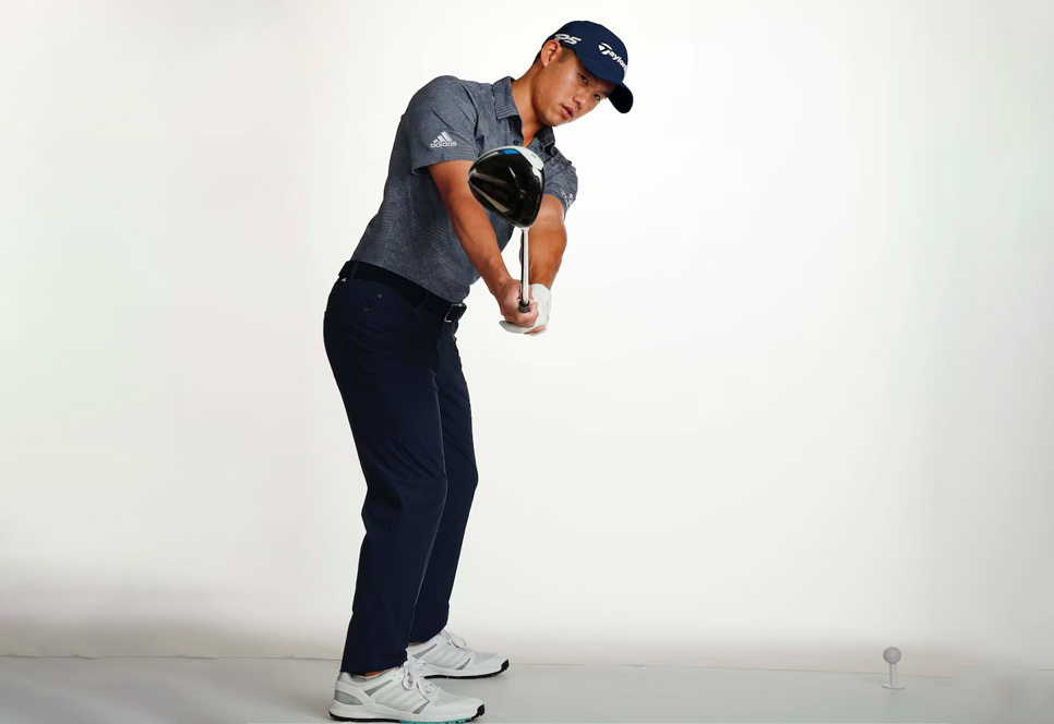 Thinking about finishing position is a great way to develop flexibility and take the ball further, continuing after impact. Morikawa hits a 95% cut in time, but he can also hit a draw when needed.