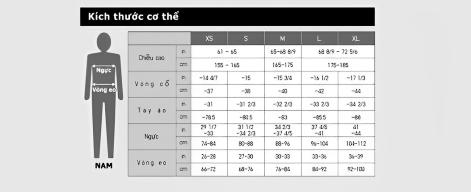Below is a standard men’s t-shirt size chart for Vietnamese men that you can refer to: