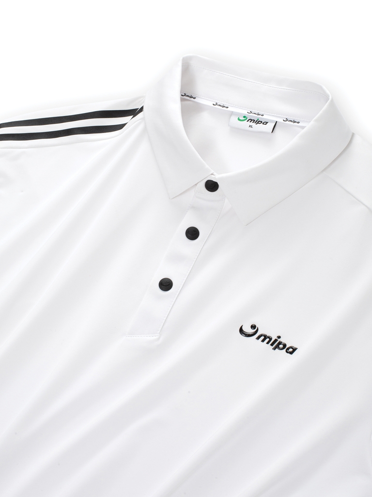 - Modern, strong polo shirt design with logo accent on the chest and unique neckline