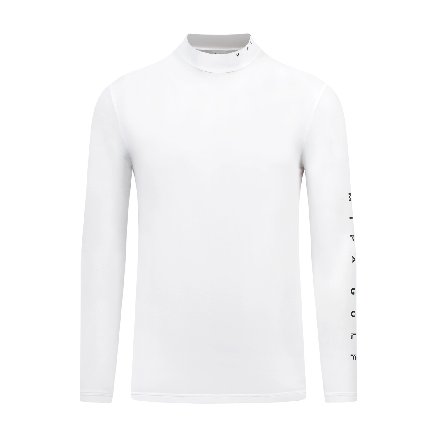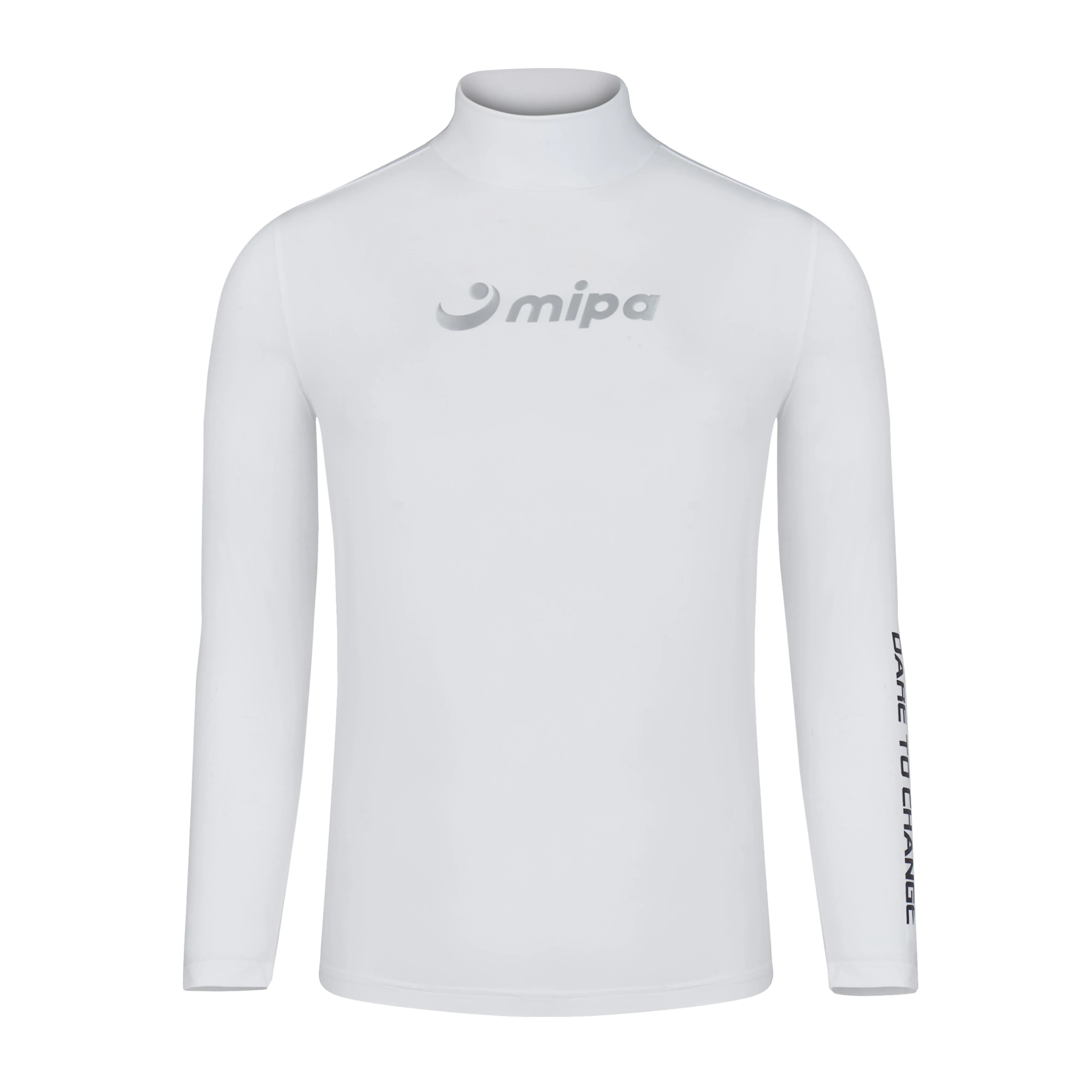 The Yuqi Top long-sleeve white men's collarless golf shirt offers a youthful and dynamic look. The centrally placed Mipa logo adds a touch of sophistication and elegance to the design.