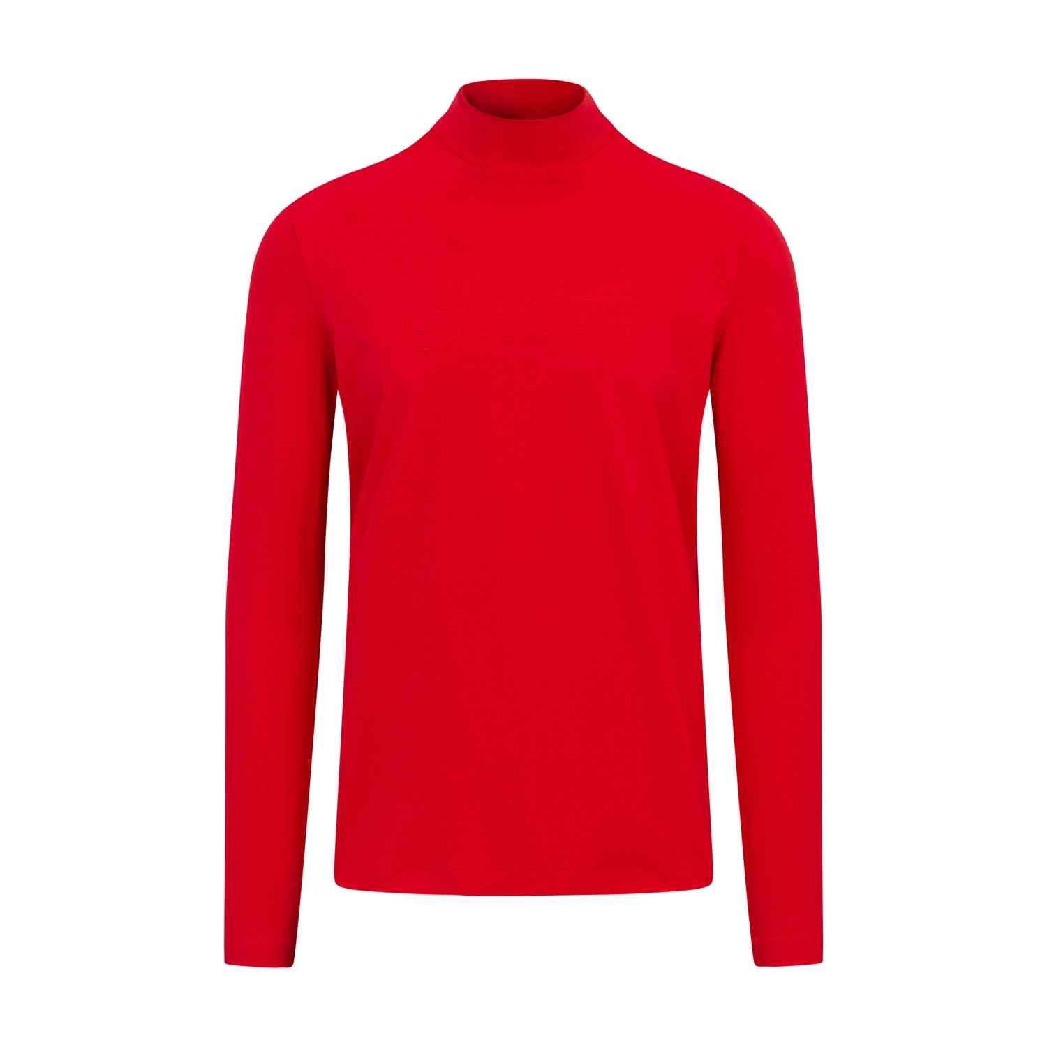 The Jacob Top long-sleeve men's collarless golf shirt offers all-weather comfort and style. Crafted from environmentally friendly European fabrics, this shirt features moisture-wicking, quick-drying, and UV protection properties. The 4-way stretch fabric ensures maximum flexibility for a perfect swing. Its slim fit and subtly embossed Mipa logo on the front collar add a touch of sophistication.