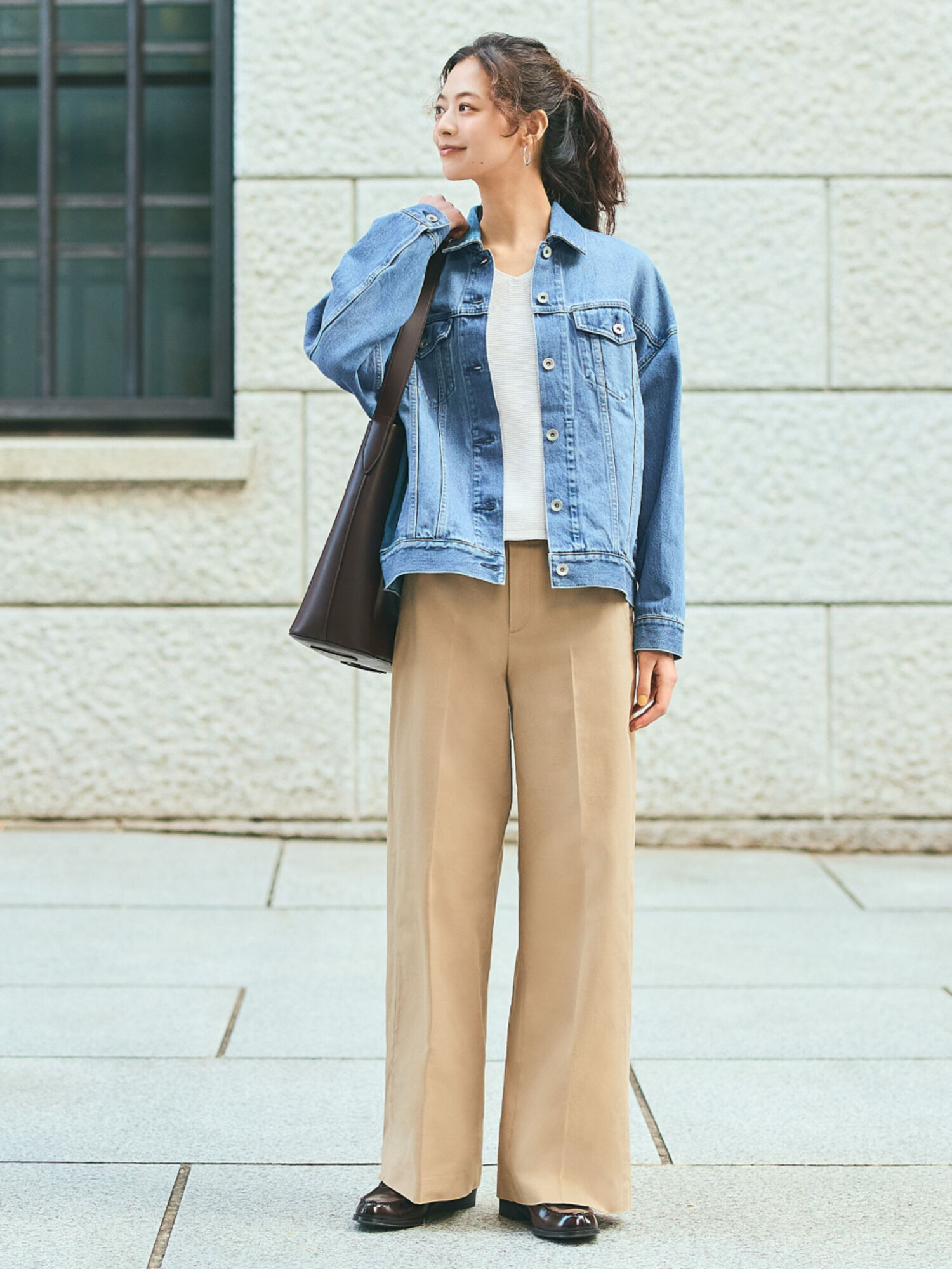 The blend of blue and beige offers an elegant, warm, yet modern look for women. Pair a blue jacket with a white T-shirt inside for a fresh, refined contrast. Add beige chinos to complete an outfit that’s harmonious, stylish, and versatile, reflecting a contemporary fashion sense tailored to various settings.