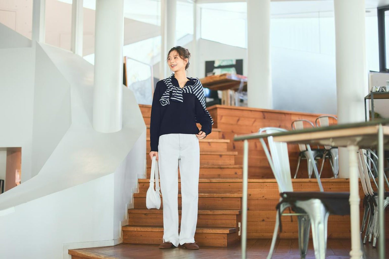 The combination of white and navy blue consistently delivers a fashionable and refined appearance. A navy blue top paired with women’s white jeans or a skirt balances the colors while creating a youthful, alluring vibe. Ideal for both work and weekend outings, this look can be polished off with elegant heels or dynamic white sneakers, making the outfit harmonious and striking.