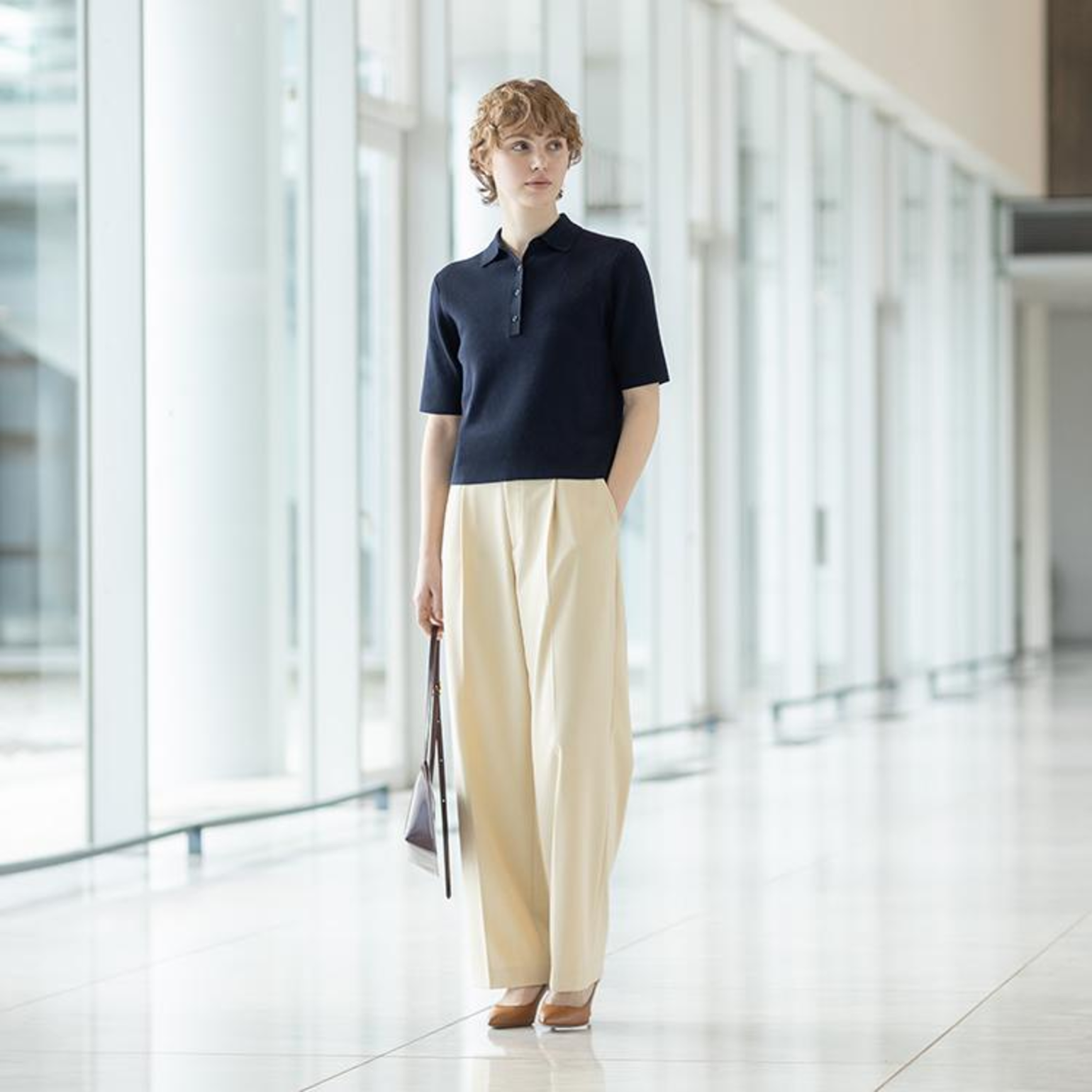 The mix of navy blue and yellow brings a fresh, dynamic vibe that effortlessly draws attention. Pair a yellow shirt with a navy blue wide-leg skirt or pants for a standout yet refined ensemble. This style radiates brightness without overwhelming, making it ideal for parties or outdoor events—a perfect blend of elegance and energy.