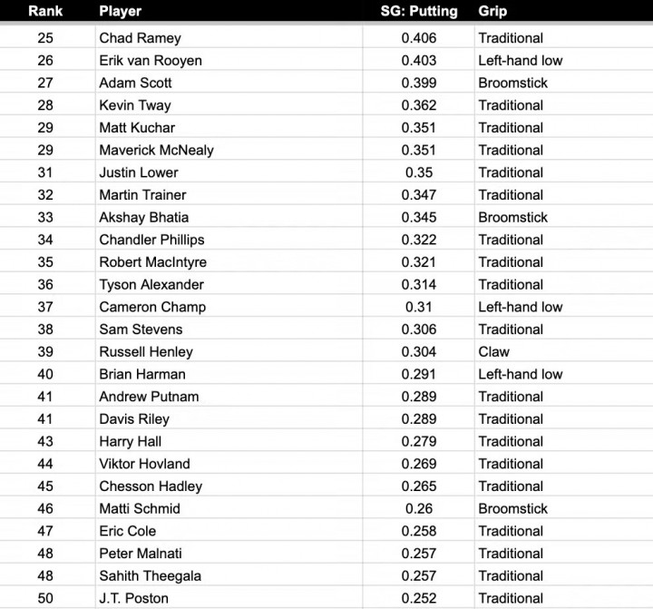 - Notable users: Russell Henley, Taylor Pendrith